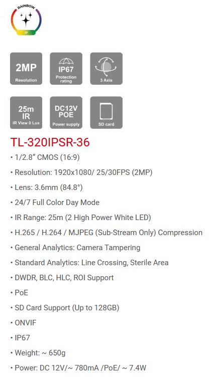IPv4, IPv6, TCP, UDP, DHCP, NTP, DDNS, 802.1X, RTSP, Multicast, UPnP, Email, FTP, HTTPS, QoS