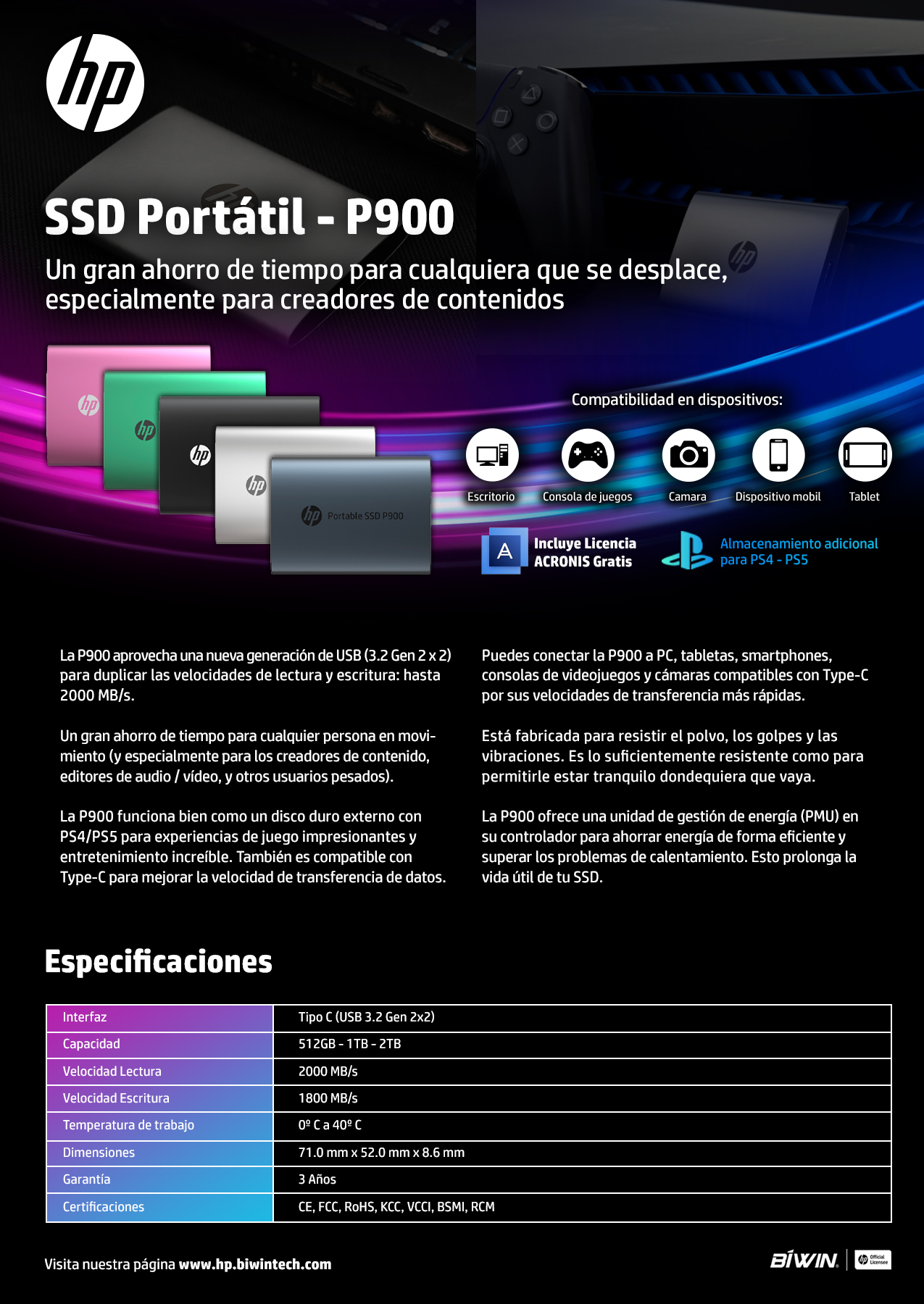 - Velocidad de escritura:2000 MB/s
